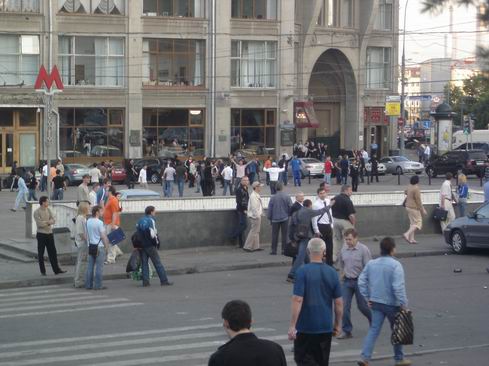 ДПНИ в намеченное противоборствующими сторонами время было в Александровском Саду в широком составе. Это была давно намеченная акция поминовения павших в Великую Отечественную Войну. Движение спокойно возложило цветы к Могиле Неизвестного Солдата и организованно разошлось. На месте остался ряд соратников, но это было их личное решение. Тем не менее, в Александровском Саду и на Манежной площади в этот вечер никаких беспорядков отмечено не было. – Получается, что ДПНИ не воспользовалось своим численным превосходством на Манежной площади. Почему? - Считается, что столкновению помешало присутствие значительных сил милиции. Но как говорится – на нет и суда нет.