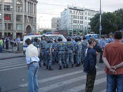 Начнем по порядку. Что вменяют националистам? Говорят о запланированном выяснении отношений с кавказцами, причиной которого послужил конфликт между группами славянской и кавказской молодежи накануне, вечером 21 июня. «Встреча» должна была состояться 22 июня в 19 часов на Манежной площади. Информация об этом, вроде как, появилась в ряде блогов футбольных фанатов и националистов в первой половине дня 22 июня. Однако на сайте ДПНИ ни слова о намеченной разборке, ни о времени и месте ее проведения сказано не было. – А, следовательно, обвинение Движения в планировании и организации беспорядков изначально лишено оснований.