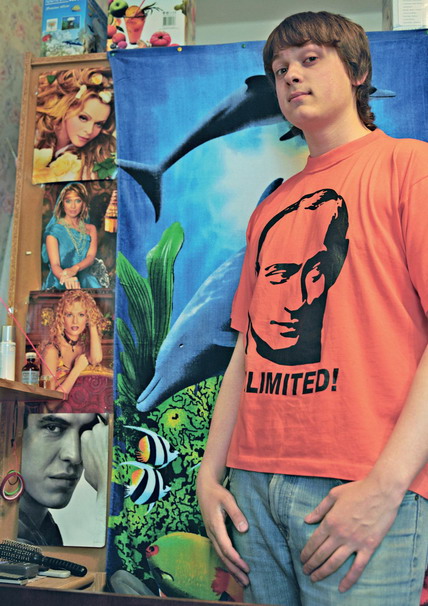 Таня Архипова, студентка Московского областного медицинского колледжа, 18 лет: «У меня есть две футболки — одна была сделана для акции у посольства Грузии, на ней изображены Буш и Саакашвили и надпись «Все они марионетки в ловких и натруженных руках», значок, флаг, обои на рабочем столе, много разных открыток с его изображением. На Путина я обратила внимание в 1999 году. Хоть мне и было тогда 11 лет, я четко понимала, что президент у нас не тот. И когда пришел новый человек, я стала интересоваться его личностью, его политикой и программами. Мне нравится, как Путин относится к детям, к своей жене, я думаю, он прекрасный муж. У меня есть несколько книг о нем. Самые любимые — Андрея Колесникова: «Меня Путин видел!» и «От первого лица. Разговоры с Владимиром Путиным».