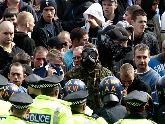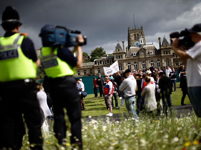 Появление на демонстрации крупных сил полиции объясняется тем, что власти Брэдфорда опасались повторения событий 2001 года, когда в ходе массовых антимусульманских выступлений были раненых более 300 полицейских и арестован 191 человек.