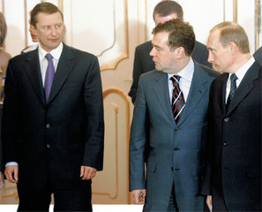 Отношения Медведева с главой администрации президента Собяниным, а также с обоими замглавами Сурковым и Сечиным, мягко говоря, не самые лучшие. С Сурковым они, правда, изначально были очень неплохими, но потом Медведев оказался единственным представителем путинского окружения, неоднократно подвергавшим жесткой критике любимый сурковский термин «суверенная демократия». В результате уже летом 2006 года Сурков тайно, а с весны 2007 года явно переориентировался на поддержку Сергея Иванова. С Сечиным же у Медведева давний конфликт еще со времен неудачного «объединения» медведевского «Газпрома» и сечинской «Роснефти» в конце 2004 – начале 2005 года.