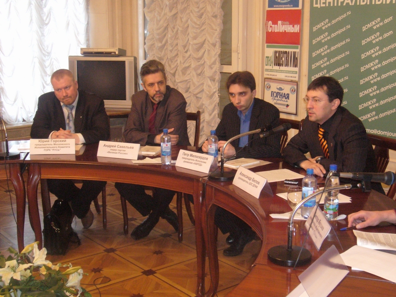 В четверг, 13 декабря, в Центральном доме журналиста в Москве состоялся круглый стол, посвященный подведению итогов прошедших выборов в Государственную Думу и выработке стратегии на будущее. Своим выступлением мероприятие, в котором приняли участие представители демократичесикх национальных организаций (в том числе, участвующих в подготовке и проведении Русского Марша-2007), открыл координатор Центра Общественных Связей Движения Против Нелегальной Иммиграции Александр Белов: