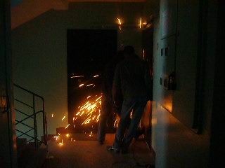 В декабре нынешнего года все необходимые постановления суда были получены заявителем. В субботу, 15 декабря Игорь Михайлов, в сопровождении судебного пристава и большого количества соратников Движения Против Нелегальной Иммиграции прибыл по адресу улица Судакова, дом 11, квартира 262. Несмотря на то, что судебный пристав, находившийся на месте событий при исполнении (в форме) и наличии всех необходимых постановлений, кавказец в грубой форме отказывался открывать дверь, при этом матерился и грозился открыть огонь на поражение. Похоже, единственным «огнем» в его квартире была газовая плита, поэтому Музаффаров, пытаясь «обезопасить» свою шкуру, через замочную скважину выпрыснул содержимое перцового газового баллончика. Тем самым, его действия уже трактовались не как «воспрепятствование судебному исполнению», а «нападение на должностное лицо при исполнении», в связи с чем был вызван наряд милиции.